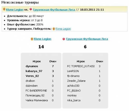 » Rivne Legion vs. Грузинская Футбольная Лига